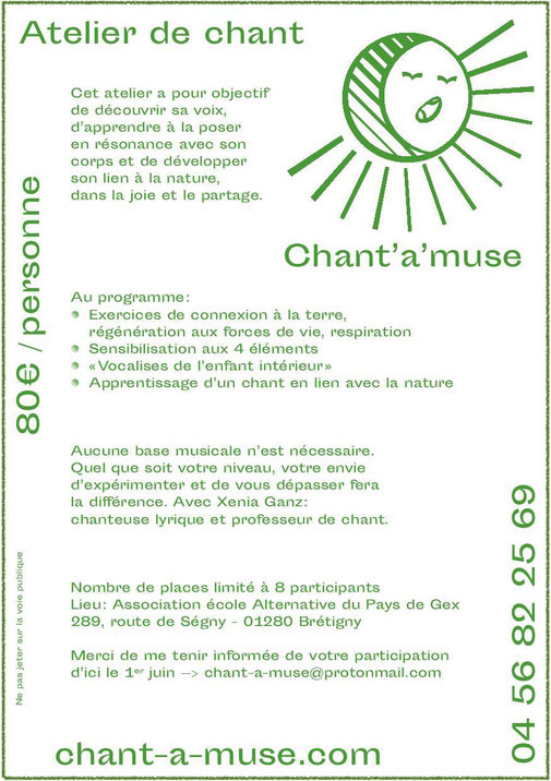 Pour en savoir plus sur les cours (tarifs, plan accès, réservation...) : Chant-a-muse.com