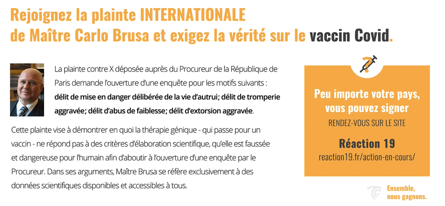 Lien pour rejoindre la plainte internationale relative aux « vaccins » ARNm - 12'000 personnes engagées (partie civile) |
